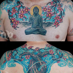 My version of illustrative tattooing encompasses a wide range of recognizable subject matter and themes. I draw upon numerous artistic influences like detailed realism and surrealism, and combine those with traditional Western and Japanese tattooing sensibilities.