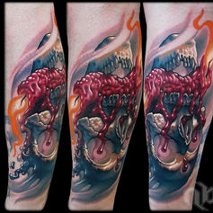 My version of illustrative tattooing encompasses a wide range of recognizable subject matter and themes. I draw upon numerous artistic influences like detailed realism and surrealism, and combine those with traditional Western and Japanese tattooing sensibilities.